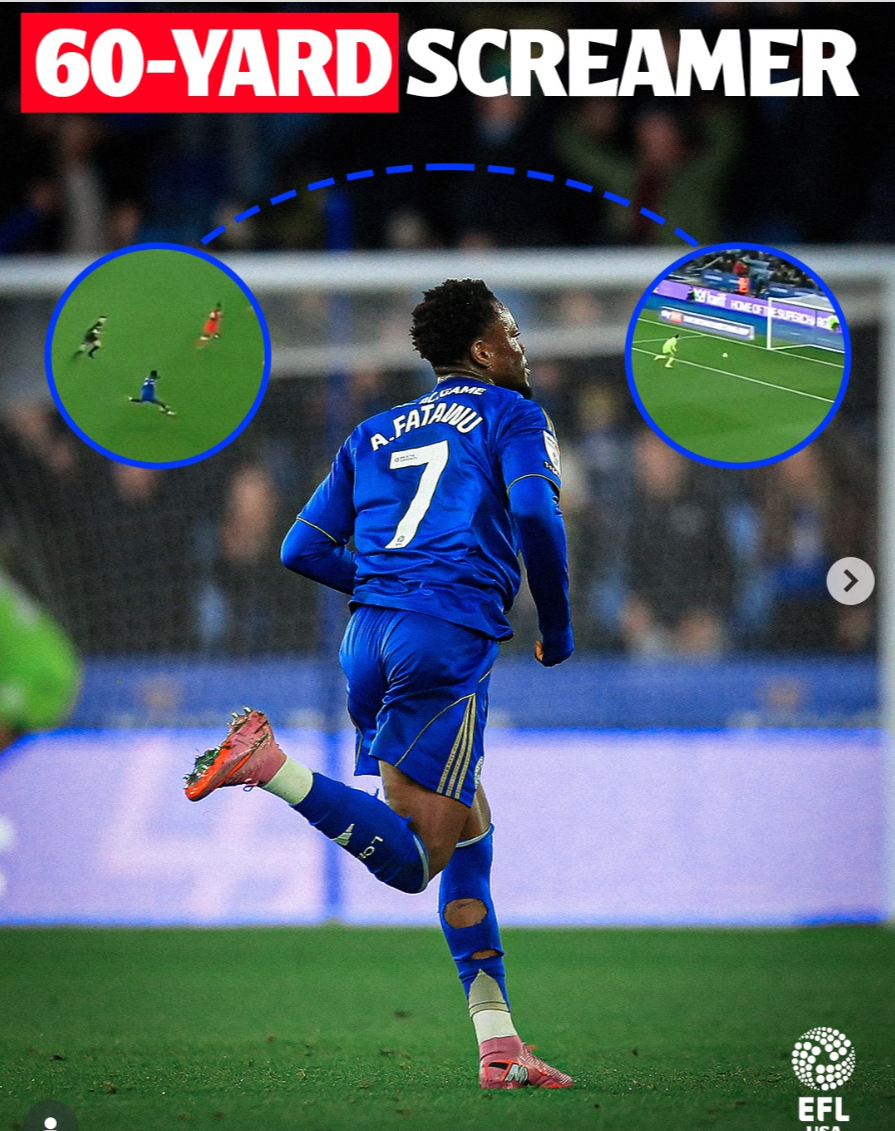 Who gets the ball from 60 yards out and goes “let’s have a pop, then?” Leicester’s Abdul Fatawu, apparently…
